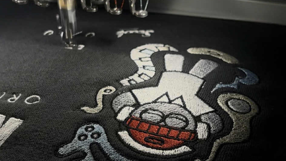 Notre mascotte Scoot brodée sur les sweats dans notre atelier.
